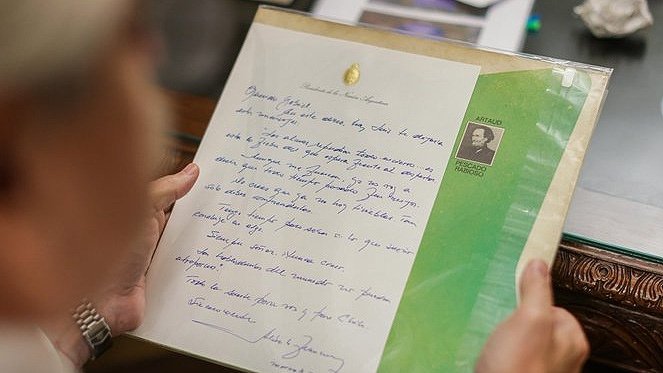Fernández contó que también le escribió una carta con frases de Spinetta que «dicen mucho sobre su presente y nos iluminan en este tiempo».