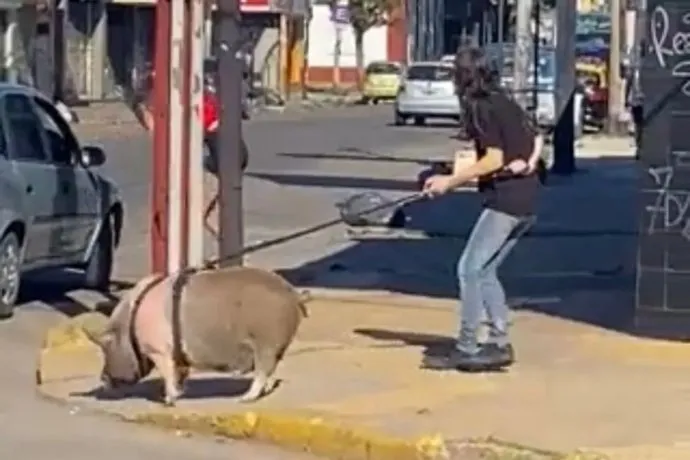 Insólito: una mujer del conurbano bonaerense sacó a pasear a su chancho