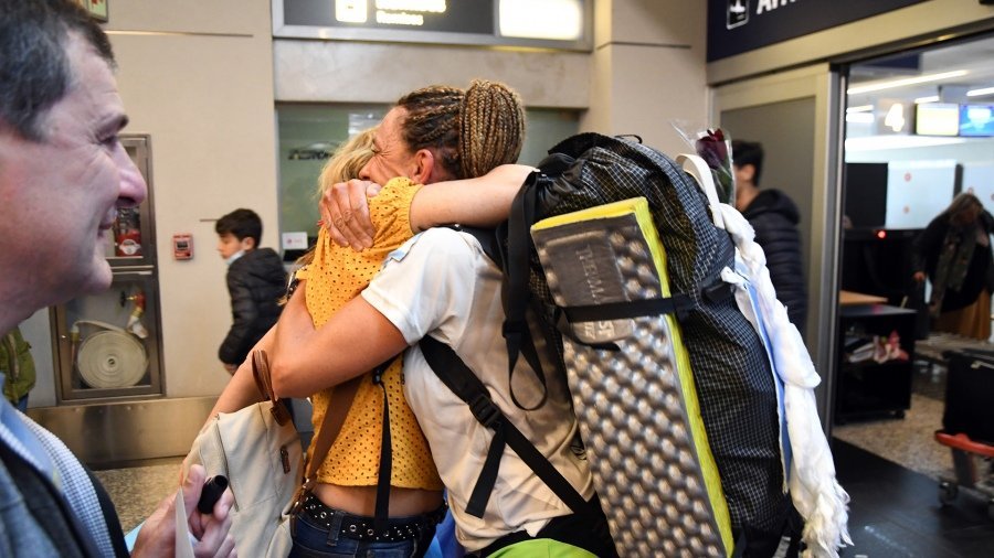 En el Aeropuerto El Plumerillo la esperaban sus familiares, amigos y el equipo del Team Aventura con el que entrena, y la deportista tenía desplegadas entre su equipaje algunas de las banderas que la acompañaron en esta proeza.