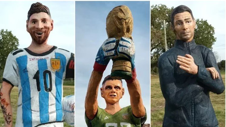Las estatuas de Messi, Dibu Martínez y Scaloni en Entre Ríos que dispararon un sinfín de bromas y memes