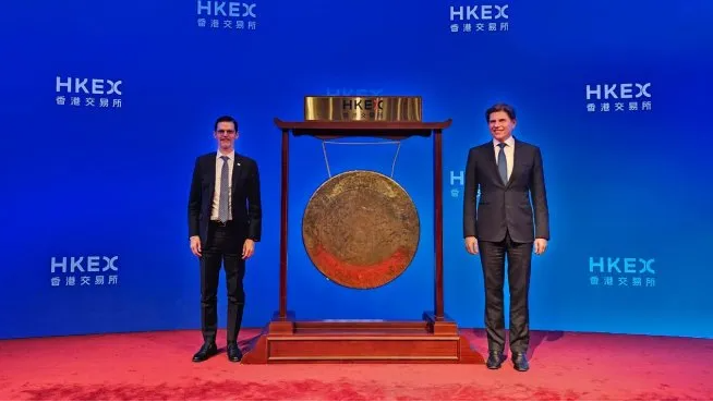 El embajador en China, Sabino Vaca Narvaja, se reunió con el CEO del Mercado de Valores de Hong Kong, el argentino Nicolás Aguzin, para impulsar financiamiento a empresas argentinas.