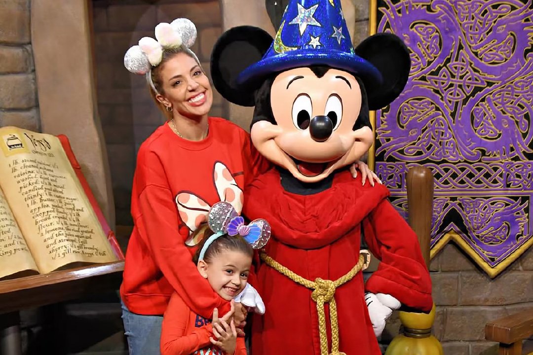 Para ese día en Hollywood Studios, Gallardo y su hija eligieron combinar a la perfección sus looks: remera de color rojo, pantalón largo, zapatillas y las clásicas orejas que se venden en el lugar. Da la casualidad que también estaban en la misma gama de colores que Mickey Mouse, que está vestido con el icónico conjunto de Fantasía.