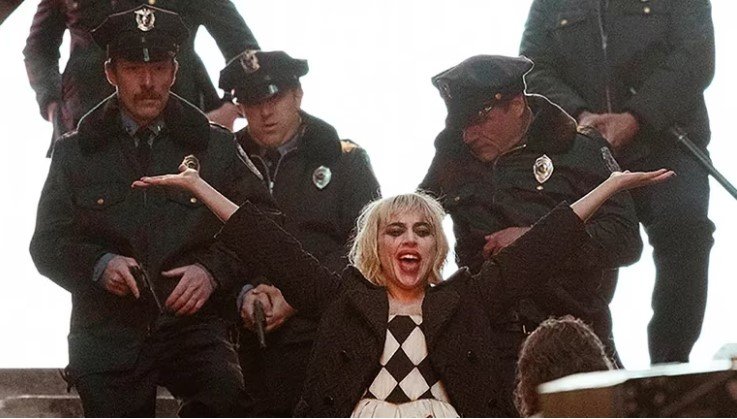 Las fotos anteriores del set han revelado que Harley (Gaga) luce asustada en la calle, así como un audio de ella cantando “Couple of Swells”. Luego hay imágenes de lo que parece ser Arkham en llamas y un accesorio que hace referencia a “Dent”, que podría revelar la participación de Harvey Dent, también conocido como Two-Face (Dos caras), en la película. Hasta ahora se han lanzado dos primeros vistazos oficiales a la película: uno con Gaga y Phoenix, mientras que otro muestra a Arthur afeitándose.