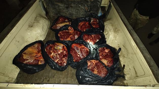 Poseían en la caja de carga del rodado, restos de carne, aproximadamente 200 kg ya fraccionada en 10 bolsas negras para la venta.