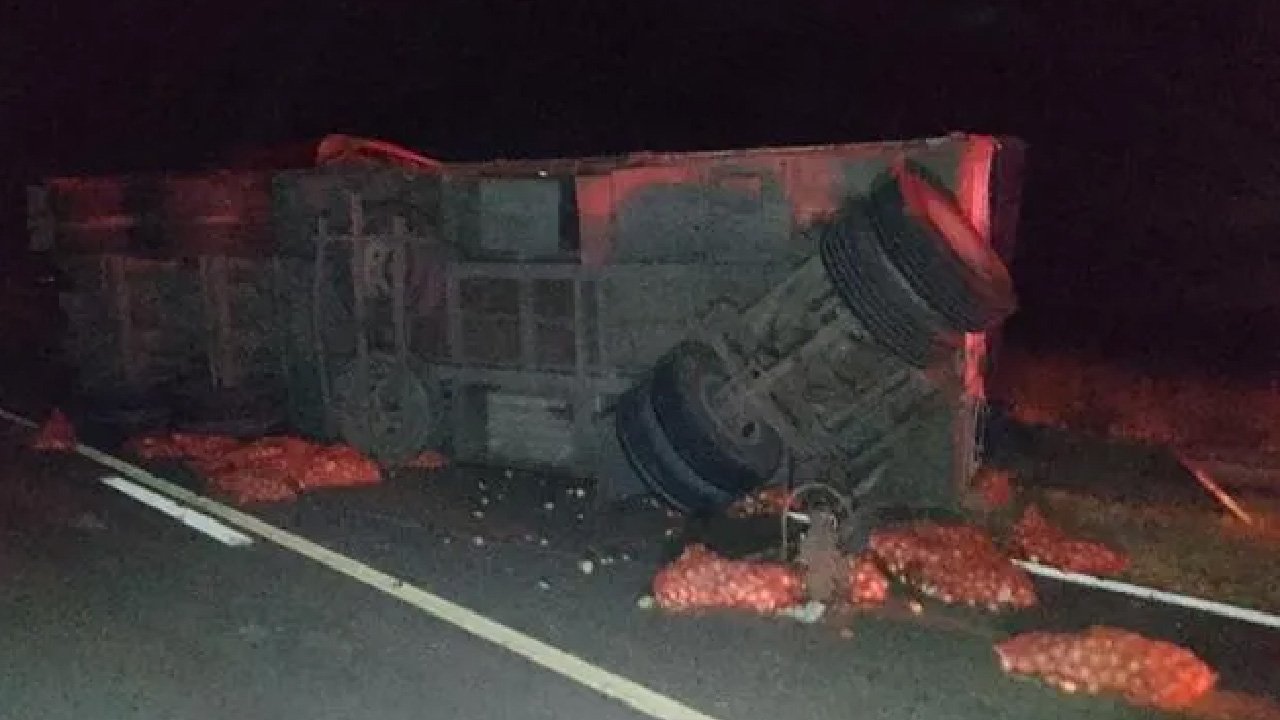 Según detallaron los conductores a la policía, ambos vehículos circulaban de sur a norte y, al transitar en una zona de pendiente, el camión lo hacía a baja velocidad. El tractor, que transitaba detrás, colisionó con la parte trasera del acoplado, provocando el vuelco del mismo (aunque no del tractor), el cual quedó apoyado sobre su lateral izquierdo en el carril oeste de la ruta.