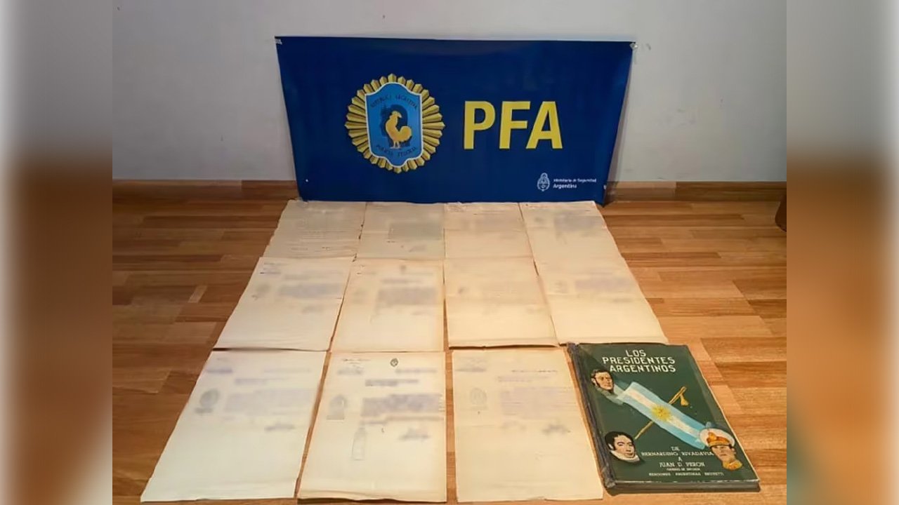 La Policía Federal Argentina (PFA) recuperó recientemente una colección de documentos históricos que llevan la firma de Juan Domingo Perón. Se trata de diez piezas que fueron rubricadas a principios de la década de 1940, cuando por entonces el expresidente se desempeñaba como Secretario de Trabajo y Previsión Social. Las hallaron en un domicilio del barrio porteño de Recoleta antes de que fueran subastadas en internet. Por el caso hay un hombre detenido.