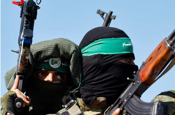 Palestinian fighters from the armed wing of Hamas take part in a military parade to mark the anniversary of the 2014 war with Israel, near the border in the central Gaza Strip, July 19, 2023. REUTERS/Ibraheem Abu MustafaLos aviones israelíes también alcanzaron a un alto operativo naval de Hamás, Muhammad Abu Shamla, en la Brigada de Rafah. El local de Abu Shamla se utilizaba como almacén de armas navales, destinadas a desplegar el terror contra el Estado de Israel.