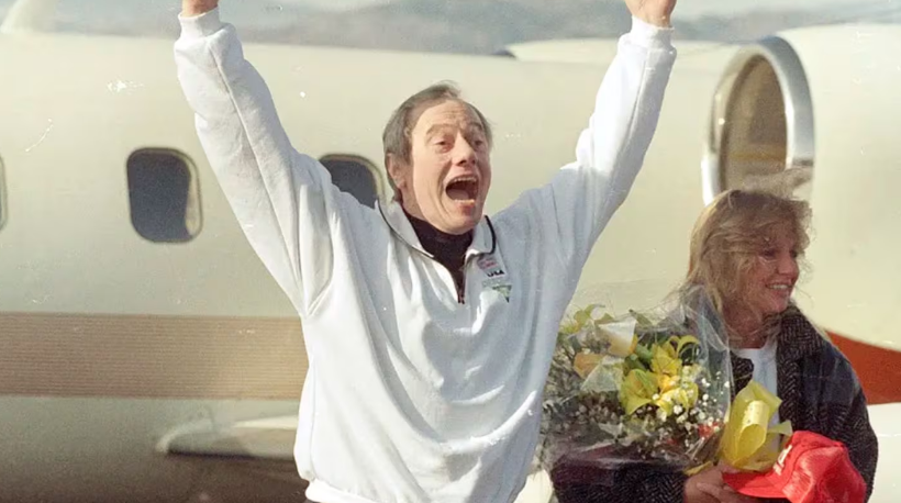 Unos días después, Sutherland se encontró en Europa con su mujer y dos de sus hijas. Con ellas viajó a Estados Unidos. Una multitud de colegas y exalumnos lo esperaba en el aeropuerto. Él bajó alborozado, con la actitud alegre y positiva que mantendría por el resto de su vida. Hay una secuencia de fotos del momento que sigue emocionando cada vez que se repasan. Sutherland, el atildado académico, salta feliz con los brazos en alto, como gritando un gol, cuando ve a su gente, cuando pisa de nuevo su tierra. Con un pantalón negro y un buzo blanco, muy pálido, con el pelo blanco, se lo ve avejentado, lleva en la piel los más de seis años de cautiverio, pero está feliz, sabe que todo ya terminó. Y decidió que su vida va a continuar.