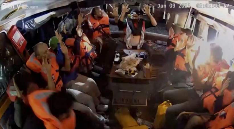 Entre los tripulantes se encontraba la activista sueca Greta Thunberg, quien grabó un mensaje previo a la detención en el que alertaba sobre el operativo y pedía ayuda internacional.