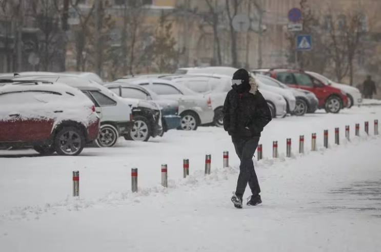La capital Kiev también está cubierta de nieve y experimenta temperaturas extremas (REUTERS/Gleb Garanich)Desde Kiev, señalaron que “en total, 2.019 asentamientos de 16 regiones están aislados de la red”.