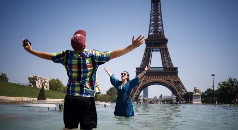 París, en alerta roja, enfrentó este martes temperaturas abrasadoras en medio de la temprana e intensa ola de calor que obligó a cerrar escuelas en Francia y Países Bajos, así como el último piso de la Torre Eiffel.
