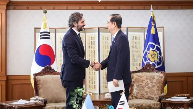 El canciller Santiago Cafiero cerró su gira por Asia Oriental y participó de un encuentro con el primer ministro de la República de Corea del SurHan Duck-soo, donde se oficializó la exportación de carne aviar argentina al país asiático con el objetivo de incentivar el comercio bilateral.