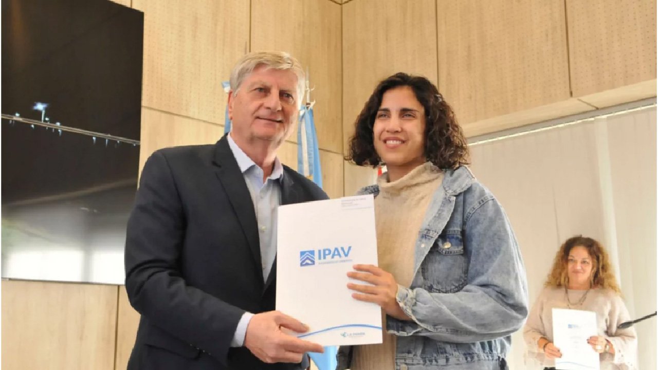 El acto encabezado por Ziliotto se desarrolló en el Salón de Acuerdos de Casa de Gobierno, y contó con la presencia de la vicegobernadora, Alicia Mayoral; el intendente Luciano di Nápoli; la presidenta del IPAV, Erica Riboyra; el ministro de Obras y Servicios Públicos, Julio Rojo; y las familias adjudicatarias de los terrenos.