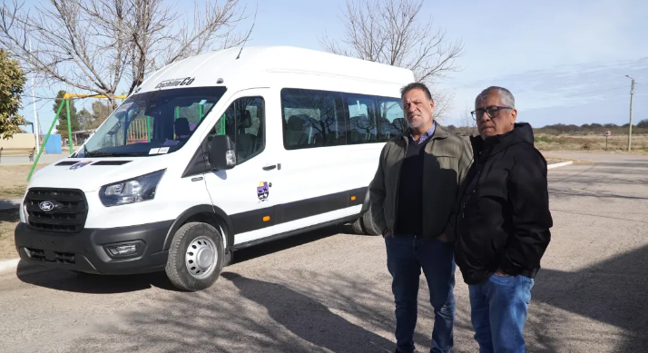 El Gobierno de La Pampa acompañó la entrega de un mini bus cero kilómetro a la Comisión de Fomento de Cuchillo Có, adquirido con créditos de la Provincia y recursos propios.