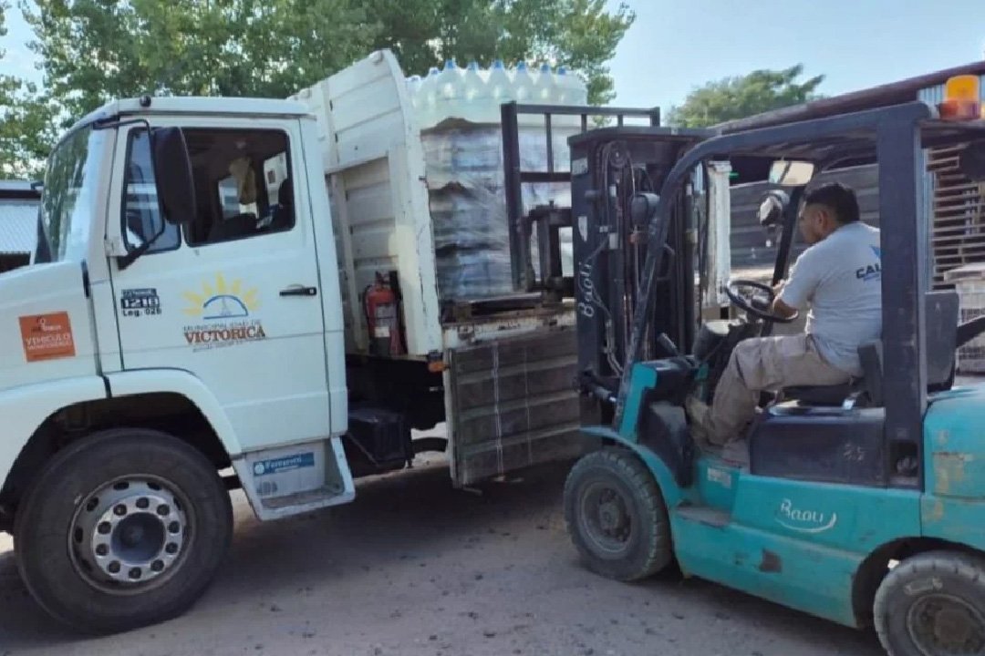 Horas atrás, un grupo de entidades, entre las que están “Los Caldenes Mx track” (motocross) , Calandri Victorica y Estación de servicios YPF General Victorica, donaron una importante cantidad de bidones de agua potable para familias que residen en los barrios afectados.