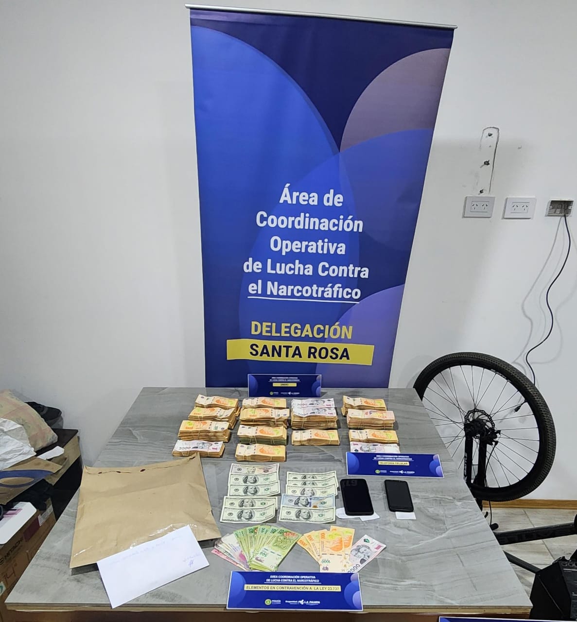 En el transcurso del procedimiento se ejecutaron tres allanamientos, revelando la participación activa del principal sospechado, un hombre de 44 años, como figura central en la presunta organización. En su domicilio se incautaron 5 teléfonos celulares; 22,7 gramos de cocaína; 189 semillas de marihuana; $ 68.750; 28 municiones calibre 9 mm; una motocicleta; y cuadernos con anotaciones relevantes para la causa.