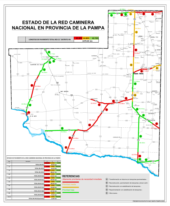 nacional en la provincia de La Pampa” y dijo que “se necesita una acción inmediata para mantener las rutas en condiciones adecuadas para el tránsito”.