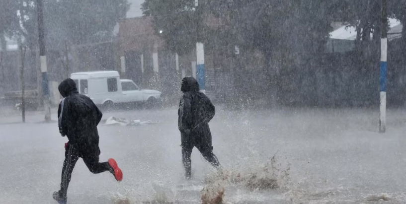 Dos jóvenes buscan refugio en medio de las anegaciones por las lluviasDos jóvenes buscan refugio en medio de las anegaciones por las lluvias