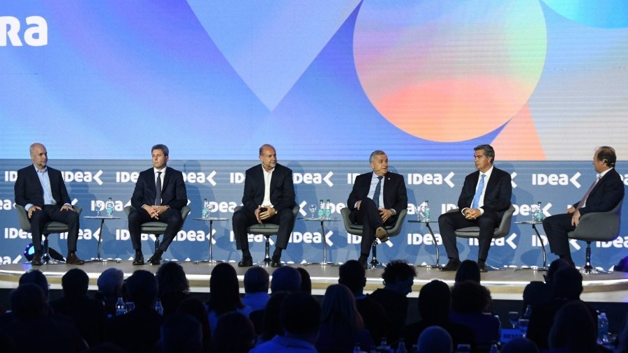 Los gobernadores de Santa Fe, Omar Perroti; de San Juan, Sergio Uñac; del Chaco, Jorge Capitanich; de Jujuy, Gerardo Morales; y el jefe del Gobierno de...