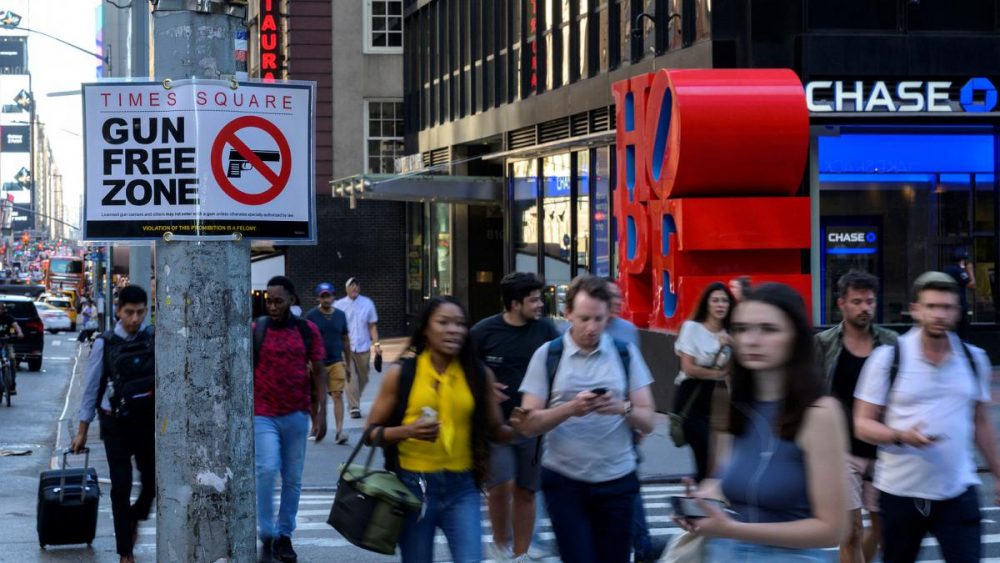 El magistrado John Sinatra bloqueó la aplicación de la parte de una norma que impedía la portación en "sitios sensibles" como Times Square, bares, biblioteca, colegios...