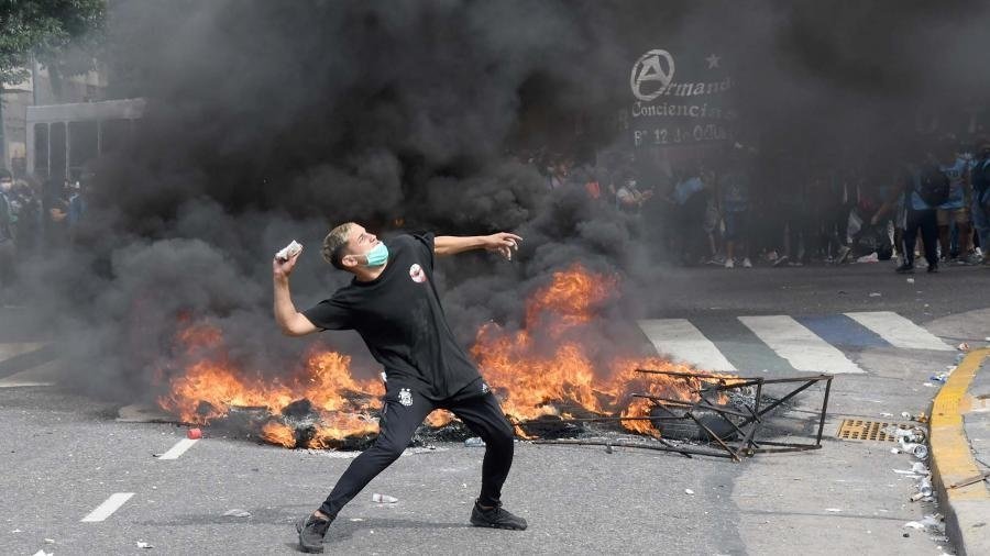 Un grupo de manifestantes comenzó a quemar neumáticos y arrojar piedras contra la reja y el frente del Congreso Nacional, donde los diputados tratan el proyecto...