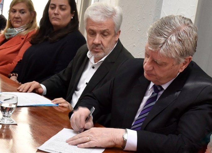 El gobernador Sergio Ziliotto, junto al intendente Pascual Fernández, encabezó hoy la apertura de sobres con ofertas para construir un salón de usos múltiples en Uriburu...